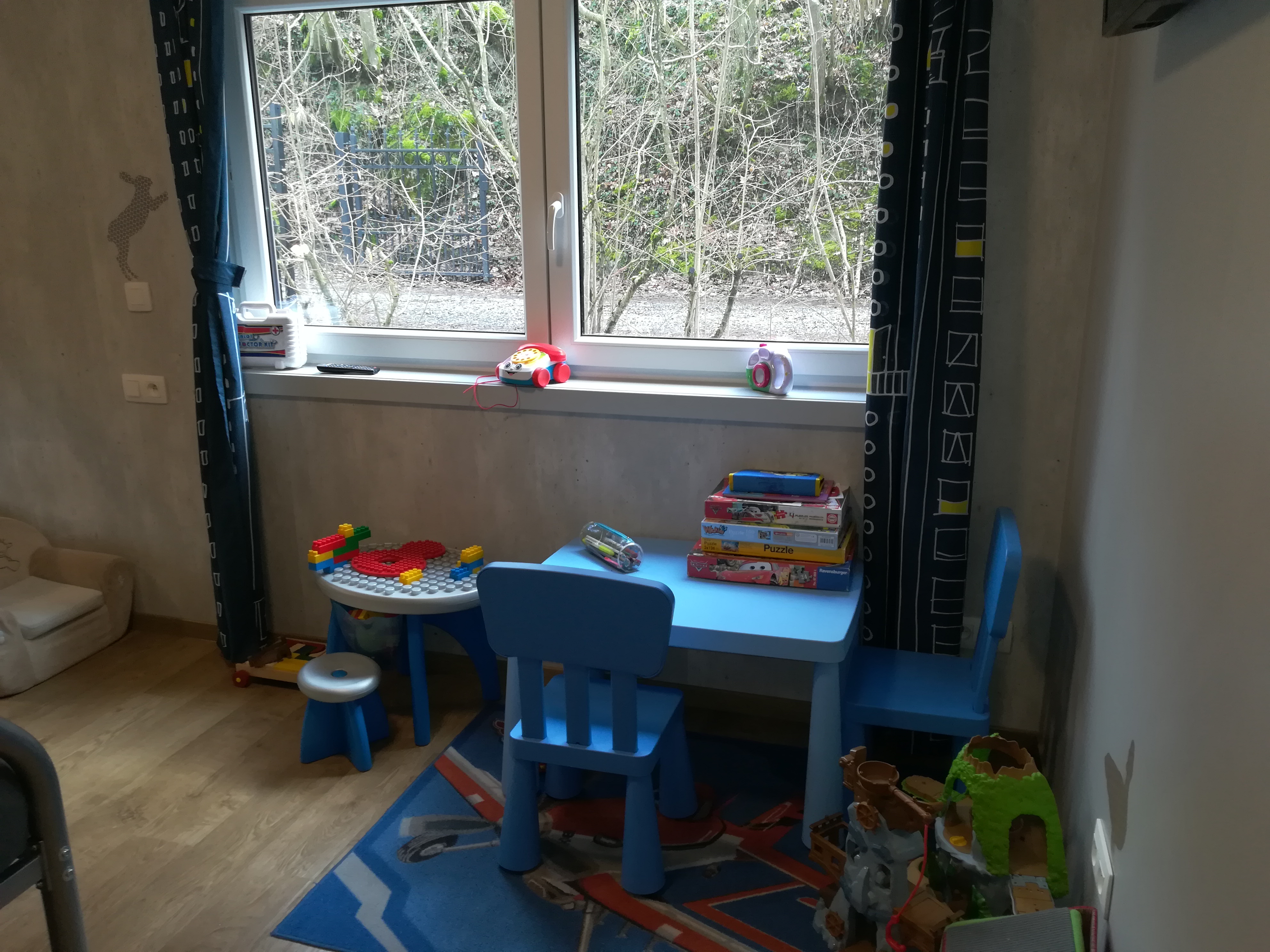 In de kast naast de tv vind je gezelschapspellen, kaartspellen, kinderspeelgoed, kleurpotloden en wat lectuur.